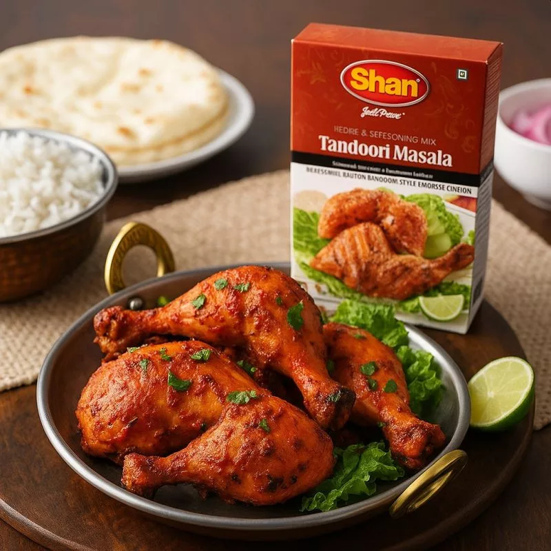 – Grillezett csirke vagy más húsfélékhez: javasolt pácolás joghurttal, citromlével és Shan Tandoori Masala keverékével, majd sütés-grillezés.