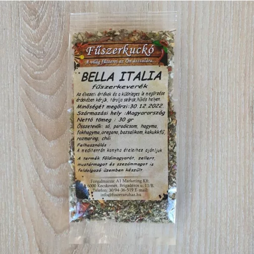 A Bella Italia fűszerkeverék földimogyorót, diót, zellert, mustármagot és szezámmagot is feldolgozó üzemben készült.