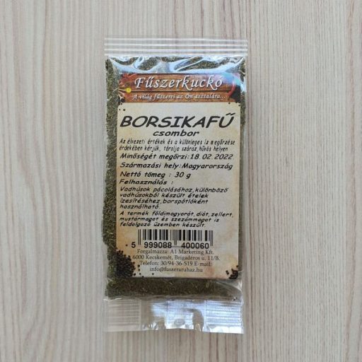 A szárított borsikafű földimogyorót, diót, zellert, mustármagot és szezámmagot is feldolgozó üzemben került csomagolásra.