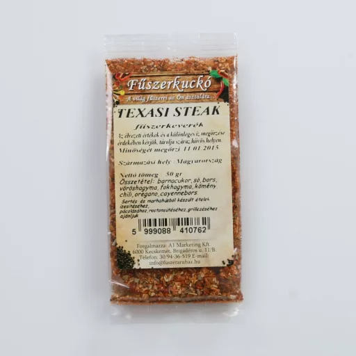 A texasi steak fűszerkeverék földimogyorót, diót, zellert, mustármagot és szezámmagot is feldolgozó üzemben készült.